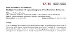 Stratégie d’investissement, enjeux écologiques et transformations de l’espace Référence : FinPlanet_3.4_StageLieu : Laboratoire Techniques, Territoires et Sociétés (LATTS), Université Gustave Eiffel, FranceContrat : Stage à temps plein, de 4 à 6 mois, rémunéré selon grille en vigueur.Date de début : 1er semestre 2026 Date de candidature : 15 décembre 2025 Contacts : Félix Adisson et Ludovic…